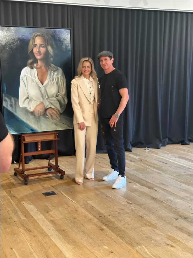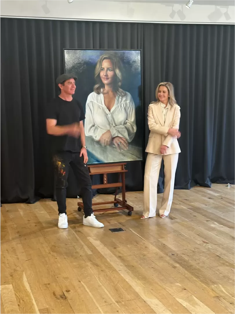 “Woah!” Payne says when she takes a squiz. “It’s a little bit hard for me to explain how I feel. There’s something so special about it but I’m not exactly sure how to put it into words. It’s incredible the way Vincent can capture people. Look at all the portraits around us. Their eyes, the emotions you can feel in every painting. It’s an amazing talent to reveal the essence of another human being. I’m actually really proud of how he’s captured me.”