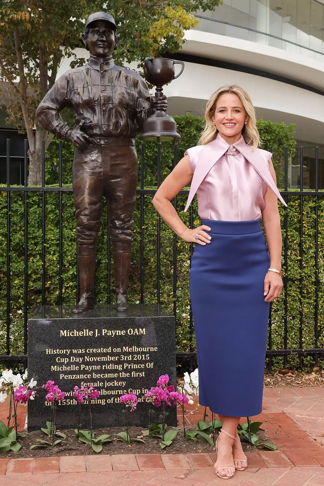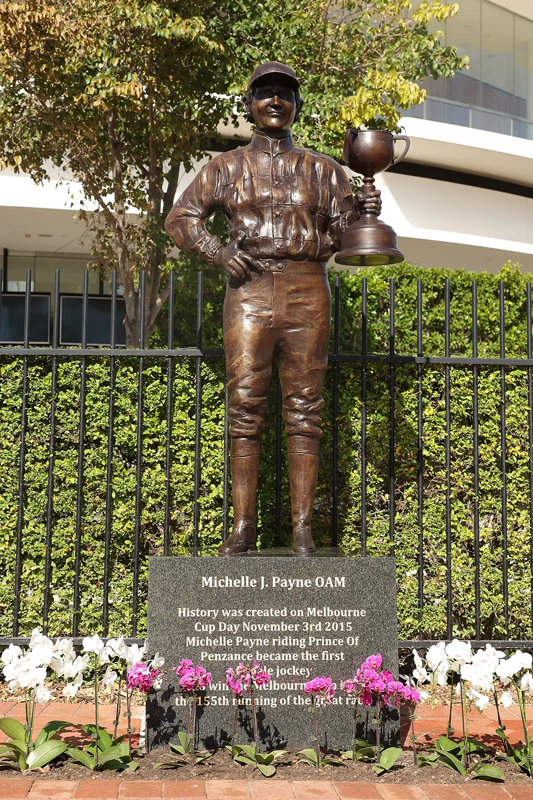 Australian horse racing trailblazer Michelle Payne, who was the first woman to win the Melbourne Cup back in 2015, has been honoured with a statue unveiled at Flemington Racecourse today.