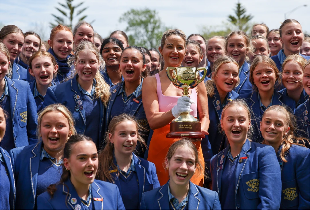 Our very own Michelle Payne (Class of 2003) returned to Loreto College last week, accompanied by the Melbourne Cup and her horse, Prince of Penzance, as part of the Lexus Melbourne Cup Tour.