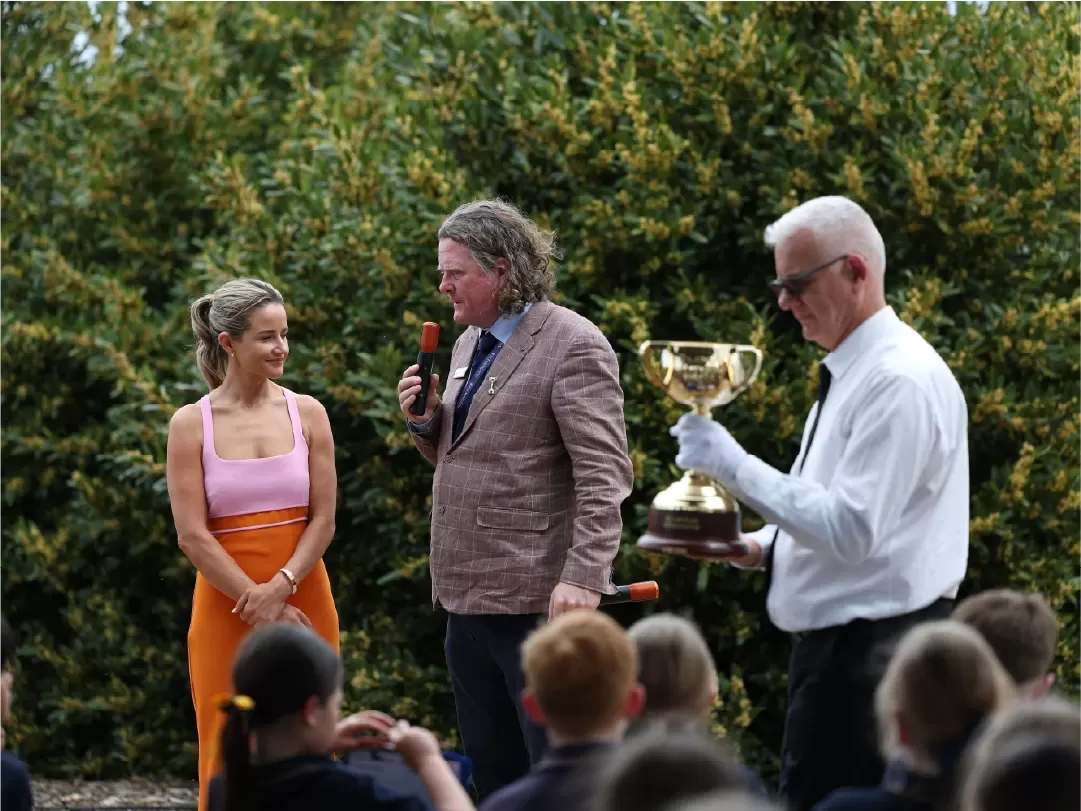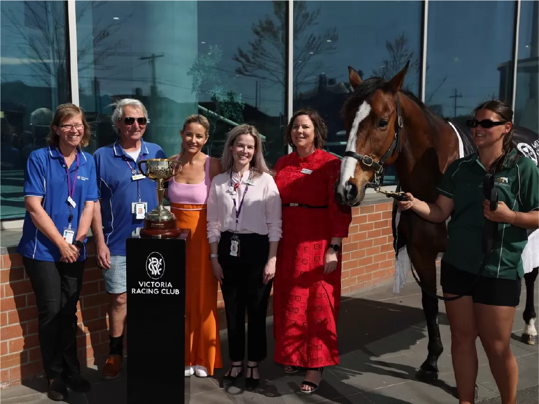 Michelle Payne (Class of 2003) returned to Loreto College last week, accompanied by the Melbourne Cup and her horse, Prince of Penzance, as part of the Lexus Melbourne Cup Tour.